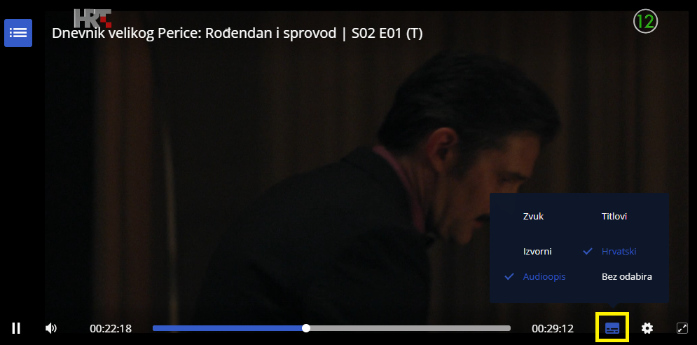 Titlovi se aktiviraju nakon pokretanja reprodukcije, odabirom posebnog simbola za postavke titlova i zvuka u donjem desnom kutu ekrana: